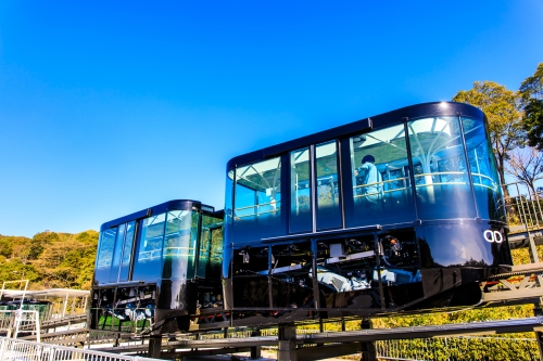 山頂まで歩くのはちょっと、、、という人はスロープカーで行きましょう。タクシーを降りた右側に乗り場があります。片道一人300円です。