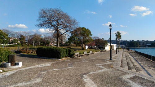 港近くにある公園です。こちらもゆっくりできるスポットとしておすすめです。海を挟んで向かい側には米軍基地が見えます。時折聞こえてくる英語に、異国の雰囲気を感じるかもしれませんね。