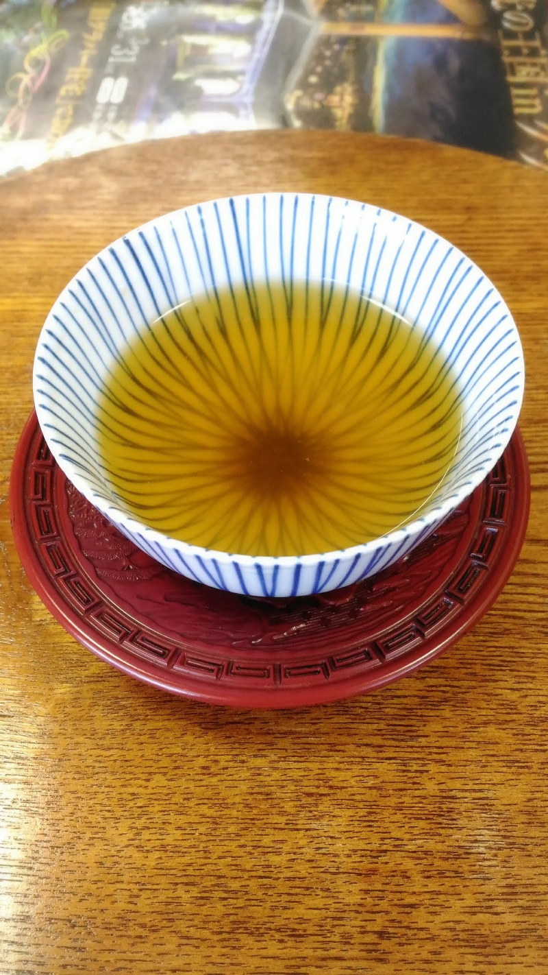 まず、お店に入って席に着くとお茶を一杯出してくれます。