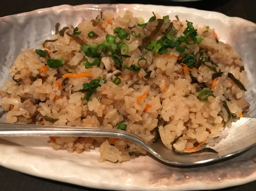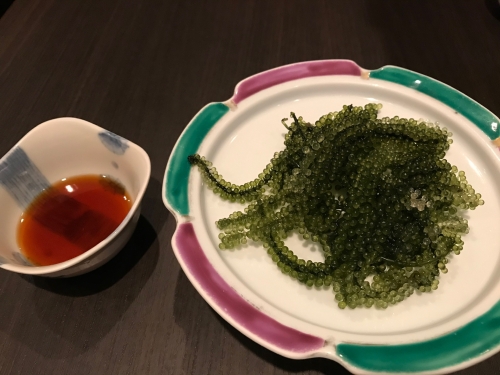 店内では、その日水揚げされた新鮮な魚を塩焼きまたは、煮付けから選んでオーダーするのがおすすめ。沖縄の定番メニューの海ぶどう(¥560)は、口の中で弾けるプチプチ感がクセになる美味しさ。島豆腐ちゃんぷるー(¥720)は、絶妙な塩加減でお酒のおつまみに最適。締めにはお腹にたまる、沖縄の炊き込みご飯ジューシー(¥580)やうちなー風ソース焼きそば(¥880)をオーダーしましょう。