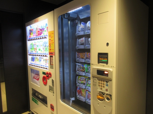 ホテル内には飲料と軽食の自動販売機があります。割り箸はチェーン同様フロントで貰うことが出来ます。また、洗面台の量も非常に多く、フィッティグルーム同様混雑を気にすることなく快適に利用できます。