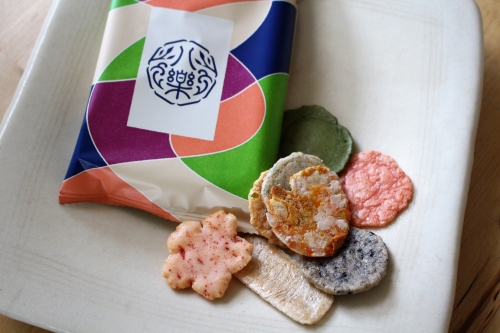前述のゆかりで有名な坂角総本舗「八樂(やらく)」(5袋入り 税込み594円)は、一口サイズのおせんべいを詰め合わせた商品です。エビやズワイガニ、抹茶などの海山の幸をふんだんに使ったおせんべいは、色合いも豊かで目でも楽しめます。1袋から購入でき(1袋 税込み118円)、プチプライス&個包装で配りやすいのでバラマキお土産にもぴったりです。