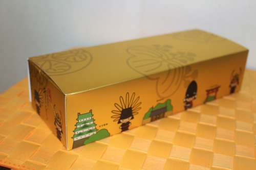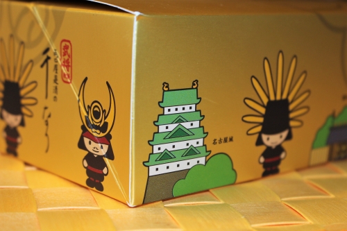 名古屋のイメージカラー(⁉)であるゴールドを配した外箱も豪華で、なおかつ2頭身のコミカルな武将イラストが全面にあしらわれていますので、手に取るだけで思わずほっこり。戦国武将好きの男の子や“歴女”なお友達へのお土産に、いかがでしょうか。