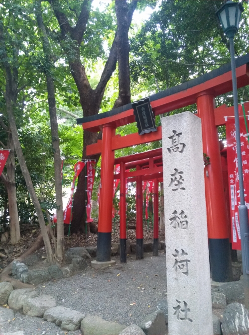高座結御子神社の鳥居を入ってすぐ左手に見えてくるのが、「太閤出世稲荷(たいこうしゅっせいなりじんじゃ)」の異名を持つ高座稲荷社(たかくらいなりしゃ)です。木下藤吉郎秀吉(きのしたとうきちろうひでよし)が、幼少時に母に連れられて参拝したと伝えのあるお社です。