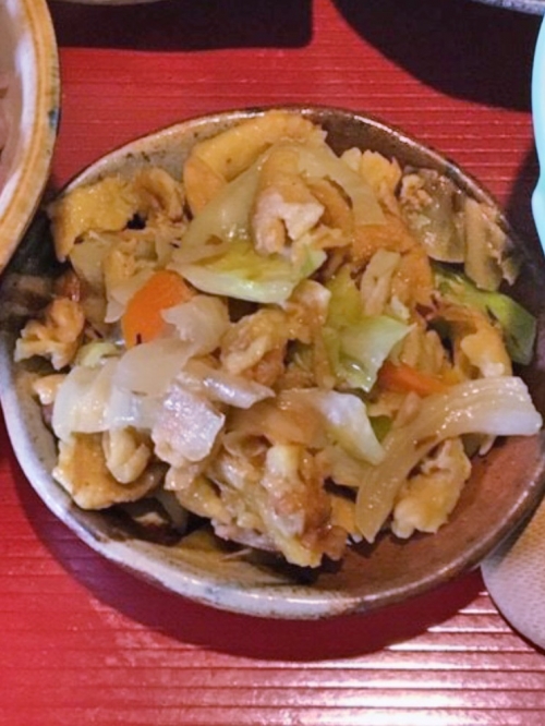 続いて、左上はお漬物で、しょっぱすぎず、食べやすいです。