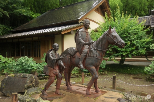 近くには「黒羽芭蕉の館」もあり、館の前には芭蕉と曽良のブロンズ像が立っています。館内では、芭蕉に関わる資料と、藩主大関家の資料を見ることができます。