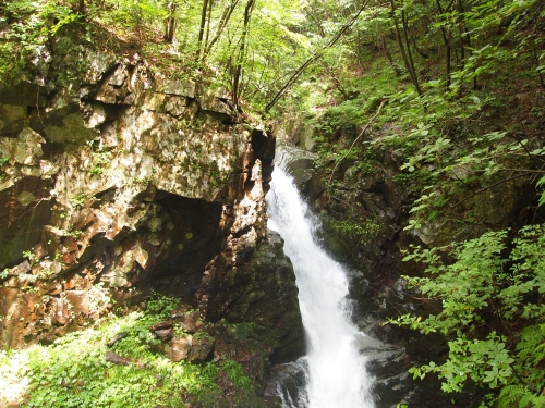 摩耶姫伝説のある摩耶の滝。昔この地に住んでいた夫婦が子宝に恵まれず神様や仏様にお願いをしていたところ、ある日、亭主が転寝をしていると杖を持った白髪の老人が現れ、四万という温泉に薬師様がいらっしゃるので、お参りするようにとつげ、消えていきました。