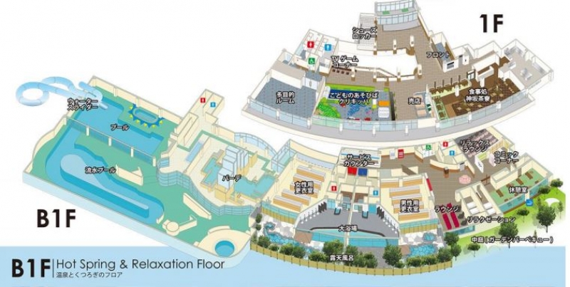 上記のお風呂施設のほか、温水プール、バーでゾーンの利用料金を含む。