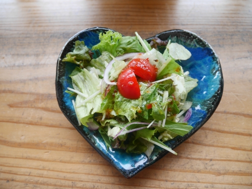 県産野菜のサラダは600円。旬の野菜を使った、みずみずしいサラダです。