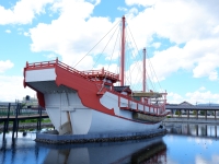 写真:旅田サトシ 高御座(たかみくら) |  写真:旅田サトシ 平城京跡資料館 |  写真:旅田サトシ 天平みつき館内にある遣唐使船(復原) |