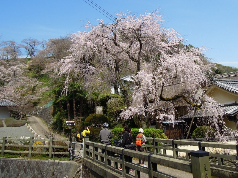 現在は住宅として使用されていますが、静かな賀名生の里に佇む茅葺きの建物は趣きがあり、国の重要文化財にも指定されています。また、毎年3月下旬頃には、この皇居跡に美しいしだれ桜が咲き、カメラを向ける人も見られます。