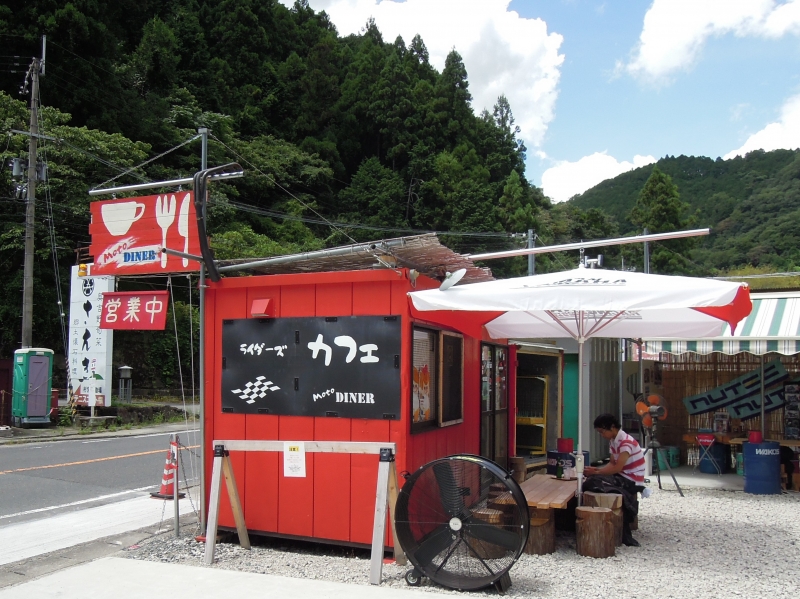 Moto DINERは、賀名生梅林から車で約5分ほどの、国道168号線沿いにあるカフェです。ライダーズカフェという名前のとおり、バイクでのツーリングを楽しむ人々がよく立ち寄っていますが、車で訪れてももちろん大丈夫です。