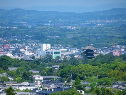 高さ150メートル以上の場所に存在している白毫寺からは、奈良市のある奈良盆地を一望できます。遥か遠くには大阪府との県境である生駒山を、手前には平城京跡興福寺五重塔などを望むことが出来ます。