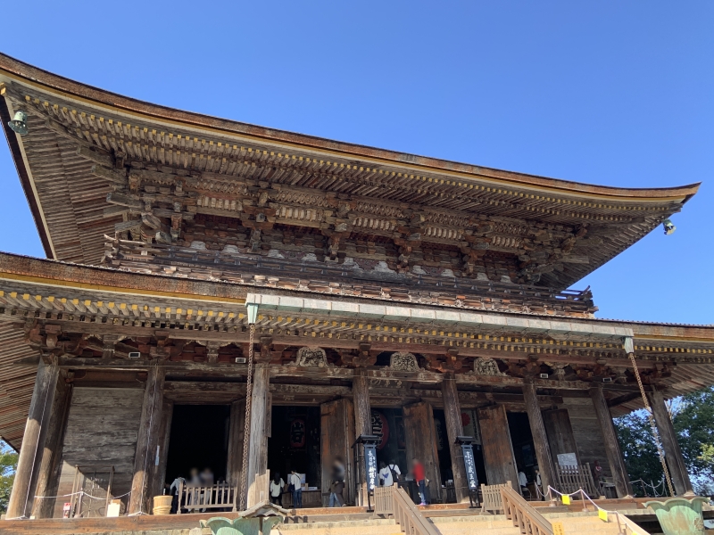 文化財も多いです。中心となるのが役小角(えんのおづぬ)が開創したと伝わる金峯山寺(きんぷせんじ)です。蔵王堂(ざおうどう)と呼ばれる本堂は、高さ34メートルもある木造建築で、吉野山のシンボルとなっています。