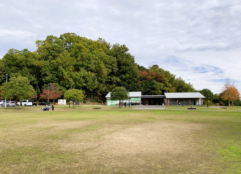 五條市郊外、金剛山(こんごうさん)の山ろくにある公園です。中央に大きな芝生広場があり、お子さんのボール遊び、ピクニックなどに適しています。