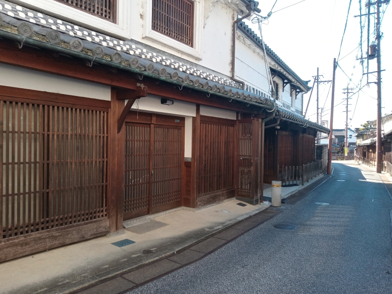 五條市の市街地に広がる、伝統的な家屋が立ち並ぶエリアです。江戸時代初期に、五條藩の城下町として、松倉重政(まつくらしげまさ)によって開かれたのがはじまりで、現在でも江戸から昭和の建築物が多数残っています。