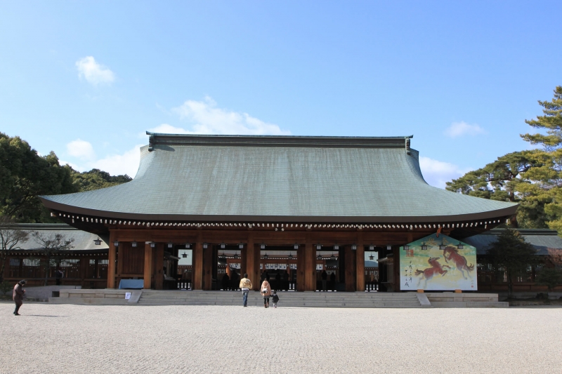 最後に向かうのは「橿原神宮」。第一代天皇、神武天皇が即位した場所であり、日本のはじまりの地である橿原神宮は、厳かな雰囲気につつまれ、落ち着いた雰囲気の神宮です。敷地も広く、全体では甲子園球場13個分もあるそう。