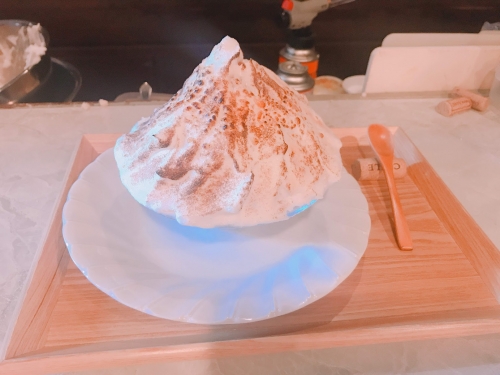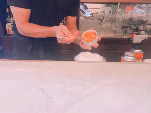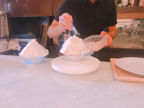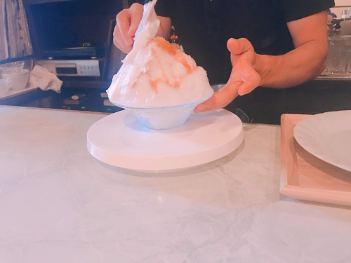 完成した後は、実際にかき氷を頂きます。クレームブリュレのような、でも中はかき氷で、とても不思議な感覚!炙られたメレンゲも香ばしくて美味しいです。