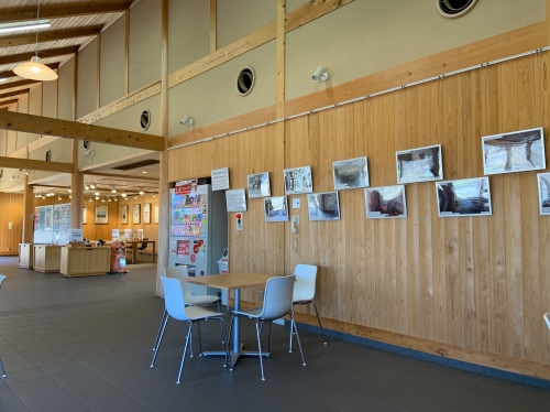 建物は、内装、外装とも木材が多く使われており、温かみがあります。飲料の自動販売機やテーブルもあり、ハイキングやサイクリングの際に、休憩するのに適しています。飛鳥エリアの観光情報を得ることもできますよ。
