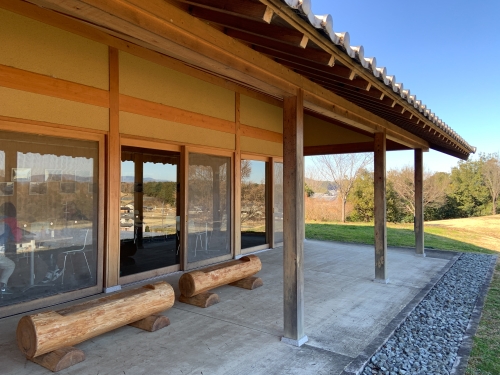 広場の端には、キトラ古墳壁画体験館・別館があります。別館には、休憩所や売店を備えています。コーヒ、焼き菓子などの軽食のほか、ちょっとしたお土産物も購入できます。