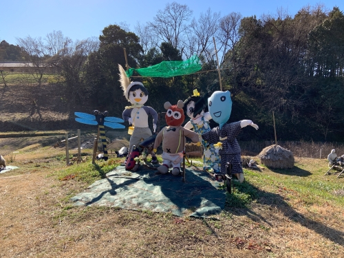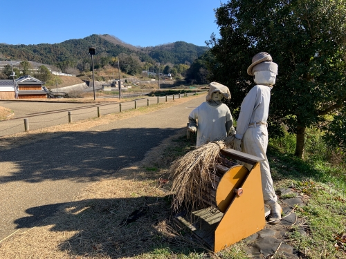 案山子(かかし)も展示されています。農作業をしている人や、ちょっとかわいらしいものもあるので、見てみてください。