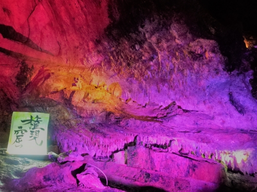 鍾乳洞内部は至る所でライトアップされています。色によって雰囲気が変わるので、同じ場所で見ていても飽きません。