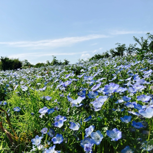 また5月にはバラ、ネモフィラ、花しょうぶなどが、7月頃からはヒマワリが見頃になります。のんびりお散歩しながら、季節の花に癒されてくださいね。園内には、公園を眺めながら美味しいパンケーキやイタリア料理をいただけるカフェもあります。