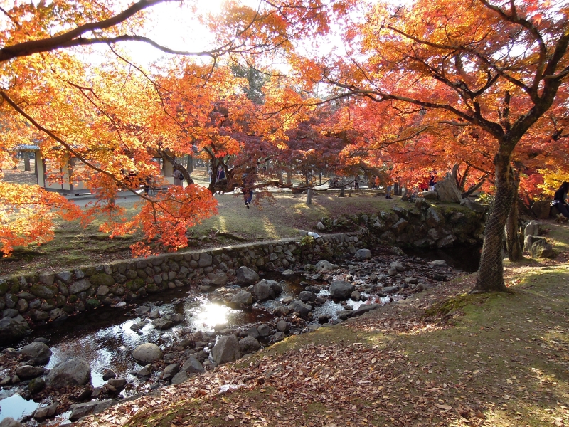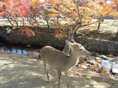 鹿が水を飲んだり、川沿いを歩いているのが見られることもあります。近くには東大寺などの社寺も多く、奈良らしさを存分に感じられる紅葉スポットと言えそうです。
