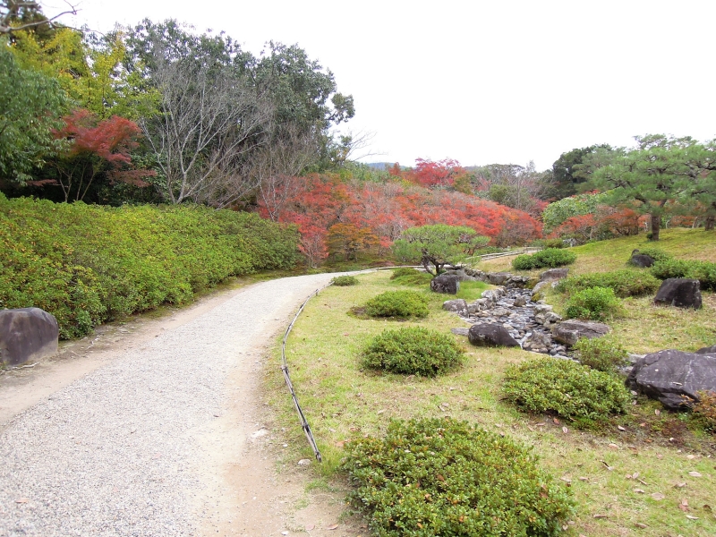 庭園は、江戸時代に造られた前庭、明治時代の後庭に分かれています。面積のほとんどを占める後庭を歩けば、鮮やかに色付いたドウダンツツジが見えてきます。ドウダンツツジの色付きはモミジよりやや早いようです。