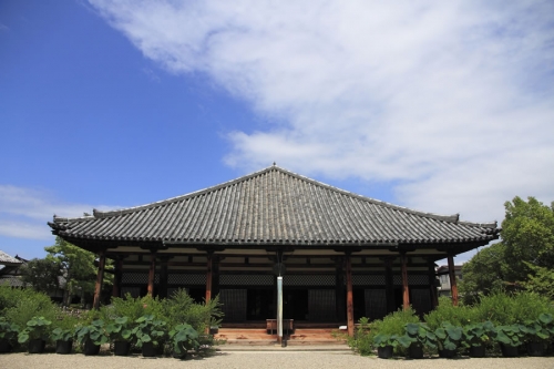 「元興寺(がんごうじ)は、町屋が並び風情を感じる、通称「ならまち」と呼ばれるエリアの一角にあるお寺で、日本最古の寺院である法興寺(飛鳥寺)を平城京に移したものとされています。小さな寺院ですが、初夏にはキキョウ、秋には萩が咲き誇り、花のお寺として親しまれています。国宝の極楽堂(本堂)に使われている瓦には、日本最古、1400年前の瓦が残っています。