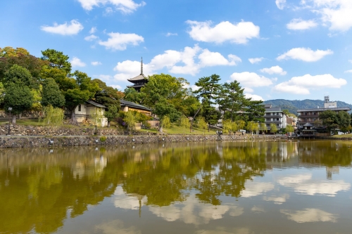 水面に映る五重塔が美しい、奈良公園を代表する名勝地!