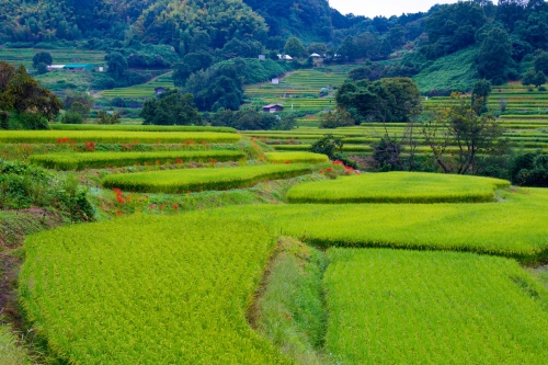 また例年9月下旬には真っ赤な彼岸花が咲き誇り、棚田に彩りを添えます。