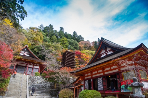 桜井市郊外の多武峰(とうのみね)という山にある神社。飛鳥時代に大化の改新をおし進めた藤原鎌足を祭神としてお祀りしています。藤原鎌足の死後、長男の定恵が十三重塔を建てたことが談山神社の始まりと言われています。大和七福八宝めぐりの八社寺のうちの一つでもあり、開運出世のご利益があるのだそう。またもみじの名所として知られており、春夏の若葉の頃には青もみじ、秋には真っ赤に染まるもみじが見られます。