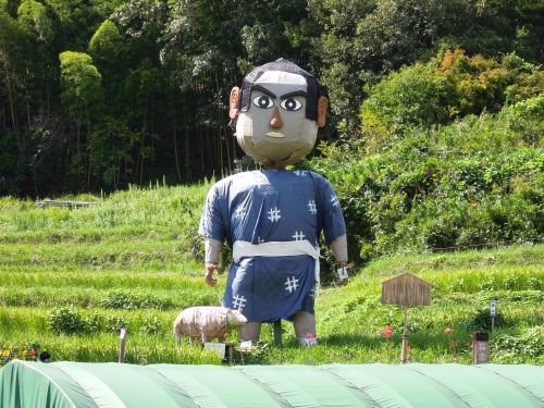 出典:tripnote.jp棚田を見下ろす巨大な案山子。こちらは他のものより長く見ることができる。