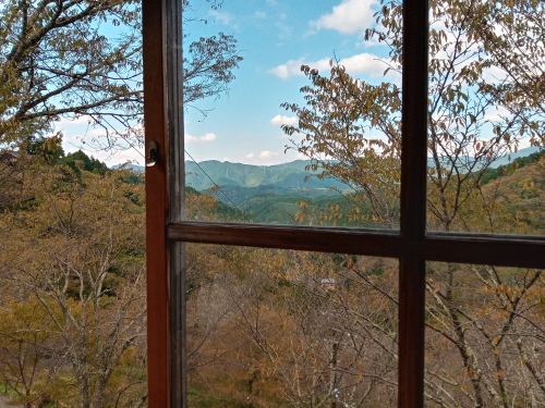 店内の窓からは、吉野の山々のほか、春には周辺に咲く桜も眺められます。散策後にホッと一息つきたいときに利用してみてください。