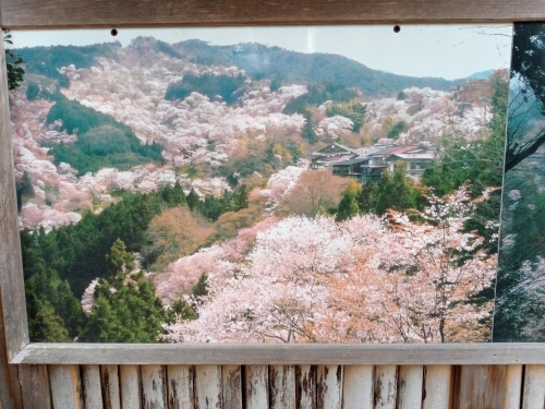吉水神社は、桜の名所としても有名です。境内から見る桜は、「一目千本」と呼ばれ、吉野の山々がピンク色に染まる様子は素晴らしいものです。