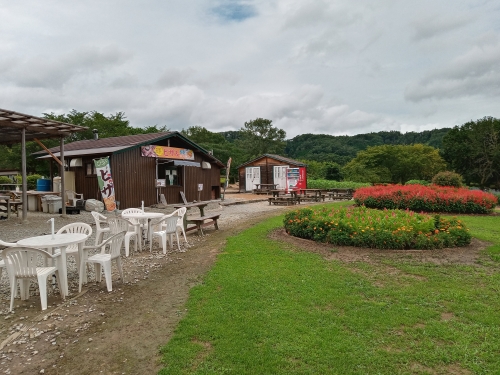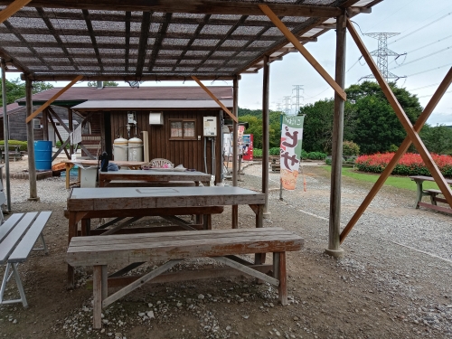 入口ゲートを入ってすぐの場所では、ピザや卵かけご飯がいただけます。風通しの良い席で、季節の花々を眺めながら味わうと、より一層美味しく感じられるでしょう。