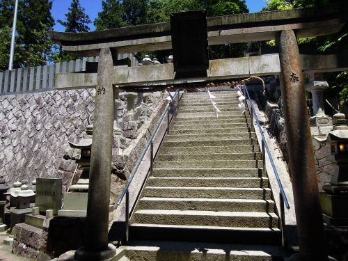 こちらの階段を登れば、拝殿、本殿、社務所などの建物が建っています。こじんまりとした境内ですが、毎年1月・4月・9月の28日には大祭が行われ、多くの見物客が訪れます。