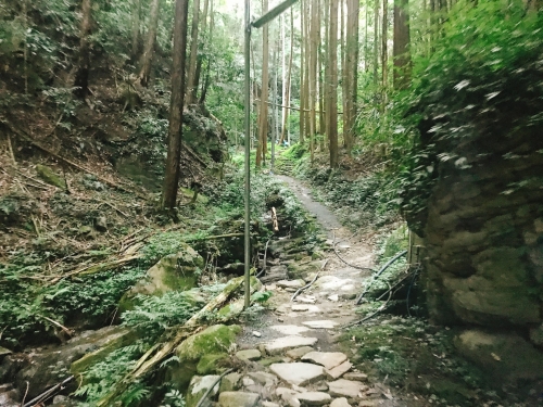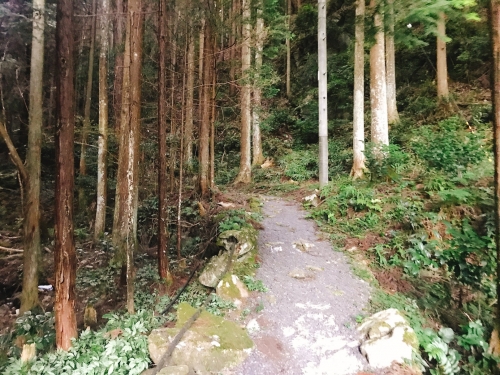 そして森の中を登っていきます。先ほどの獣被害の看板が気になりますが、筆者が訪れた時は動物1匹も見ませんでした。しかし本当に森の中を進んでいるので、あたりには気を付けた方がいいかもしれません。また、舗装はされていますが、山道なので足を滑らせないよう気をつけてくださいね。