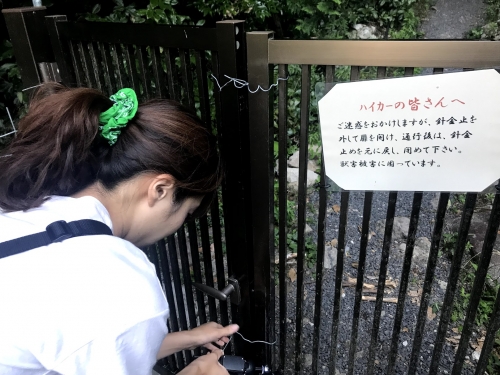 なんと、獣被害のために扉が設置されていたのです!扉についている針金をいったん解除し、中に入ることができます。もちろん、入った後は針金をしめておくようにしましょう。