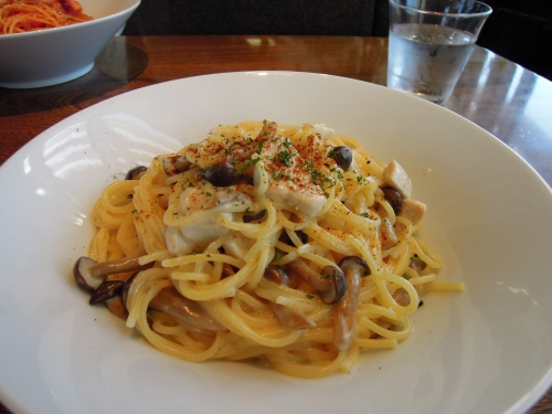 パスタは日替わりのものが3種類(870円~)用意されており、ランチタイムには、パンケーキまたは前菜がセットで付いてきます。お昼のワンプレートランチは、前菜とメイン、ごはんが見た目も美しく盛り付けられています。お値段は1,080円です。