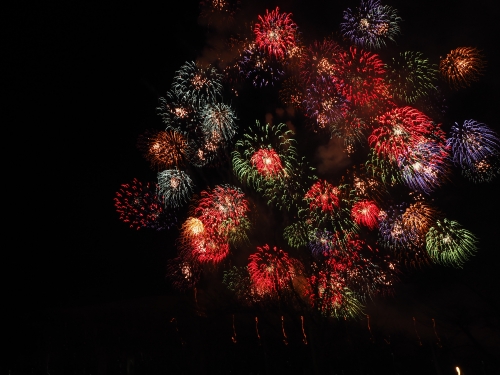 18:15から始まる大花火打ち上げ。2018年は、約600発もの花火を打ち上げたそう。打ちあがる時間は約10分間とそれほど長くはありませんが、奈良県最大級と言われており、イベントの目玉のひとつです♩