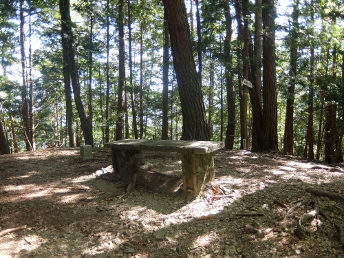 吉野山最南端であり、最高峰の標高858メートルの青根ヶ峰。山頂は木々に覆われていて眺望は望めませんが、杉の木に囲まれながら休息できるベンチが用意されています。