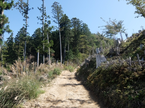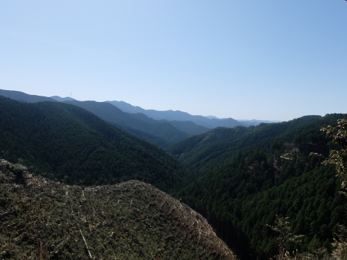 山頂までには木々の伐採により開けた地があり、見晴らしがよく遠く山々を見ることができます。青根ヶ峰山頂は大峯奥駆道のルート上にはありませんので、大峰山の「従是女人結界」の碑がある途中の分岐点で分かれます。