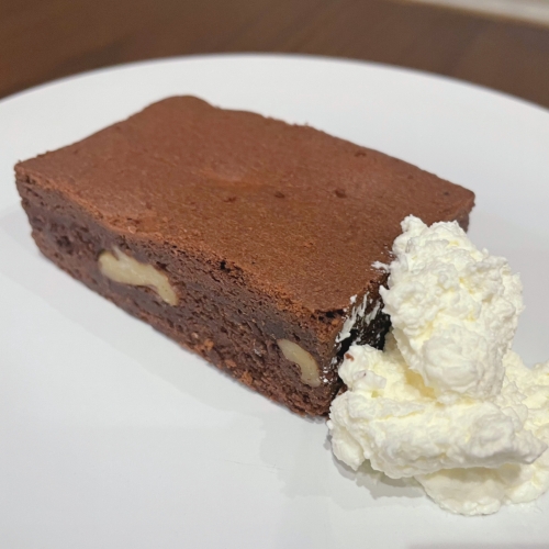 ちなみに、一部商品は、テイクアウトすることもできます。今回筆者は、本店限定の「ブラウニー(450円)」と「バスクチーズ ミニ(500円)」をテイクアウトしました。ブラウニーのクリームは、テイクアウトでも別容器に入って付いてきましたよ。