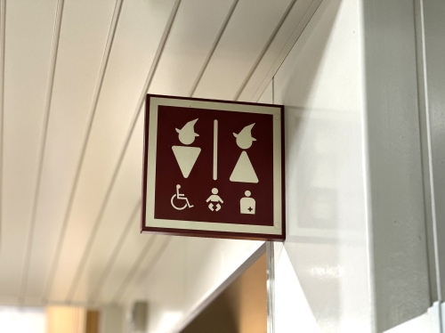 トイレのピクトグラムや壁面のデザインもハリポタ風
