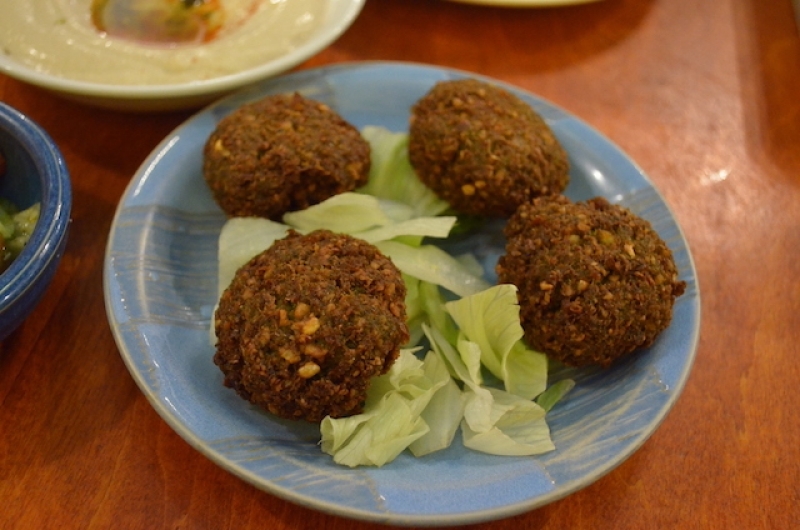 ファラフェルは、ひよこ豆のコロッケのような食べ物で、ひよこ豆、ニンニク、タマネギ、コリアンダー、クミン、などが含まれます。