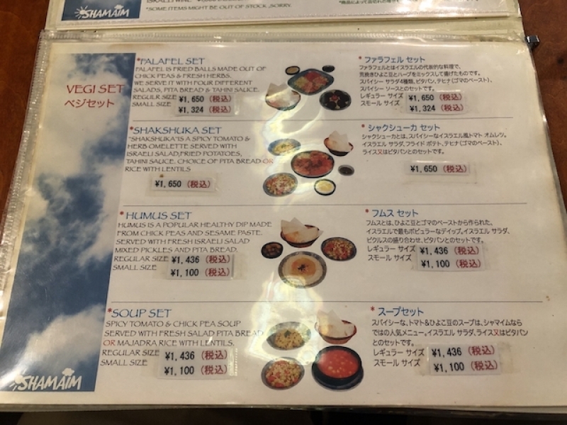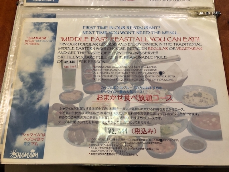 シャマイムのメニュー