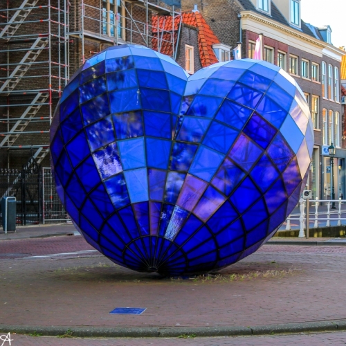 デルフトはオランダの古都で、アムステルダムよりもコンパクトで落ち着いた空気が流れています。「デルフト焼き」という青い陶器で有名な街で、その青い色は「デルフトブルー」と呼ばれています。デルフトブルーのハートのオブジェや、デルフト焼きのかけらやタイルを使用したアートが見られるのも特徴です。