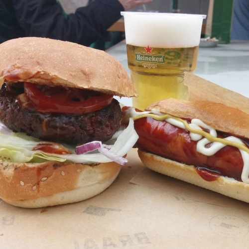 また、ビールのお供にぴったり!のバーベキューも行われていることも。炭火のよい匂いが食欲をそそります。筆者はハンバーガーとホットドッグをいただきました(入場料とは別料金)。